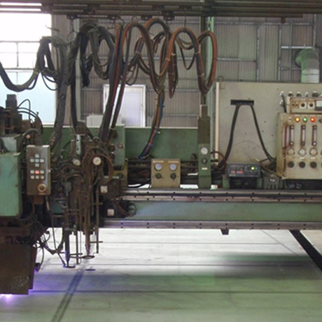 ここで紹介しているものは、プラズマ切断機です。NC(Numerically Controlled)と呼ばれる制御によって、原寸で作成した数値データを元に鋼板を切断することが出来ます。