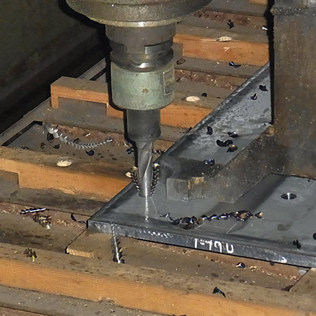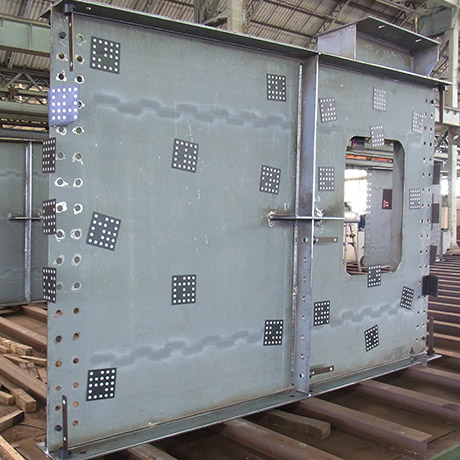 切断、孔あけを行った鋼板を、組立溶接で形状を決定した後、本溶接を行います。