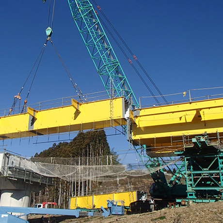 部材が現場に到着すると、架設が始まります。現場条件にも対応し、適切な架設方法を選定し、安全第一で作業を行います。