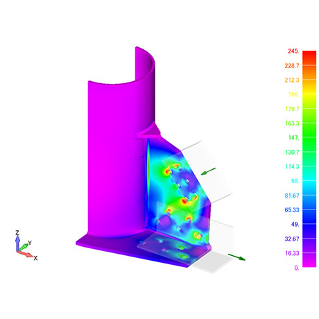なお、お客様のニーズに応じて、ボルト接合部の滑りを考慮した非線形の不動変位解析も可能です。