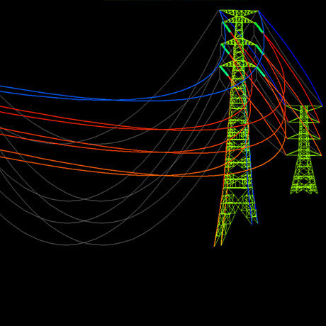 特に、送電用鉄塔は、電気を送るための架渉線を支持しており、鉄塔と架渉線が相互に影響を与えることから、風や地震に対する応答特性は一般的な鋼構造物と大きく異なります。この応答特性の解析のため、私たちは、鉄塔―架渉線の連成系をモデル化して解析できるプログラム(TowerCableResp)の開発に成功しました。このプログラムには、長い間積み重ねてきた台風観測や振動試験の成果が反映されているため、実証に基づいた高精度な解析が可能です。