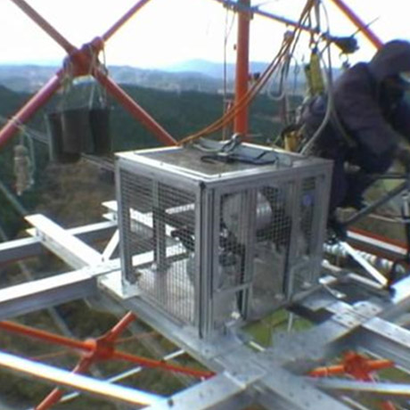 私たちは、台風の風速変動や、変動する外力で揺れる鉄塔の振動特性を把握するため、長い年月をかけて、台風観測、振動試験などの実験を積み重ねてきました。この成果として、例えば、観測においては、絶対変位を計測する光学式変位計、無電源にて正確な加振力が得られる人力起振機の開発などとあわせて、独自の観測実験ノウハウを保持しています。 また、新たに評価する部材や治具については、圧縮・引張荷重による強度確認試験、様々な風速や風向による風荷重を計測するための風洞実験なども得意としています。