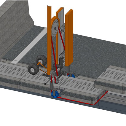 専用のカッターブレードで作成したスリット部にワイヤーを落とし込み、伸縮継手を切断する工法で既設床版コンクリートに影響を与えることなく、伸縮継手のみを綺麗に取り除くことが可能となります。切断に伴い発生する汚泥および粉塵を最小限に抑え、低振動・低騒音(騒音は最大で70dB台)で、昼夜間時間帯を問わず施工を可能にした環境にやさしい画期的な新技術です。施工時間は簡易鋼製伸縮継手で7時間以内、鋼製フィンガージョイントで8時間程度と短時間施工が可能です。実績は過去14年間で5600m以上にのぼります。